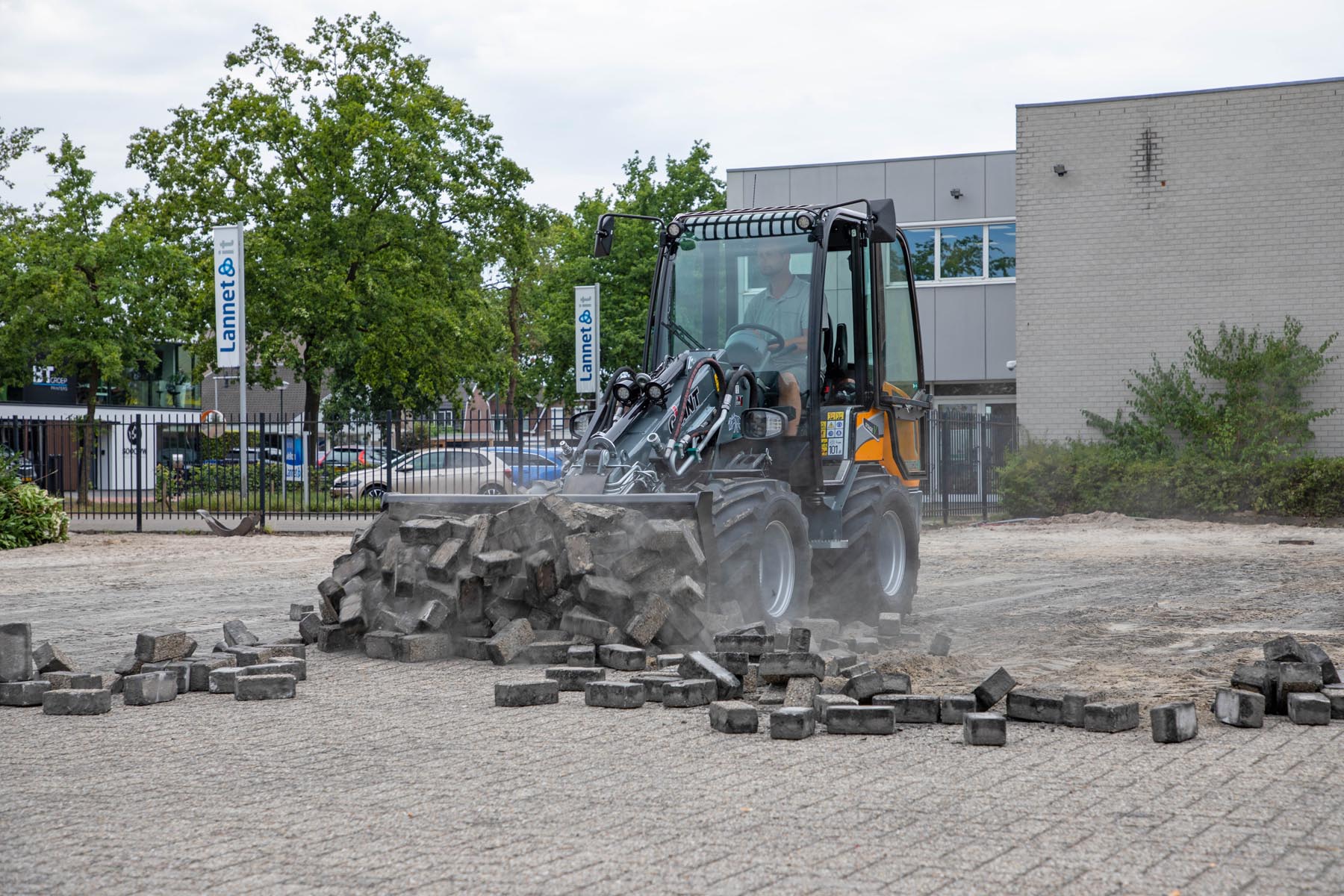De riekbak is speciaal ontwikkeld voor het verwijderen van straatwerk. Dankzij de unieke vorm met afgeronde randen en lage zijwanden kunnen stenen en tegels soepel in de bak rollen, zodat een groot oppervlak straatwerk in één beweging kan worden verwijderd. Het brede mes aan de voorzijde zorgt ervoor dat een strakke ondergrond wordt achtergelaten, wat ideaal is voor het opnieuw bestraten van wegen of pleinen.