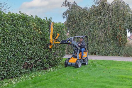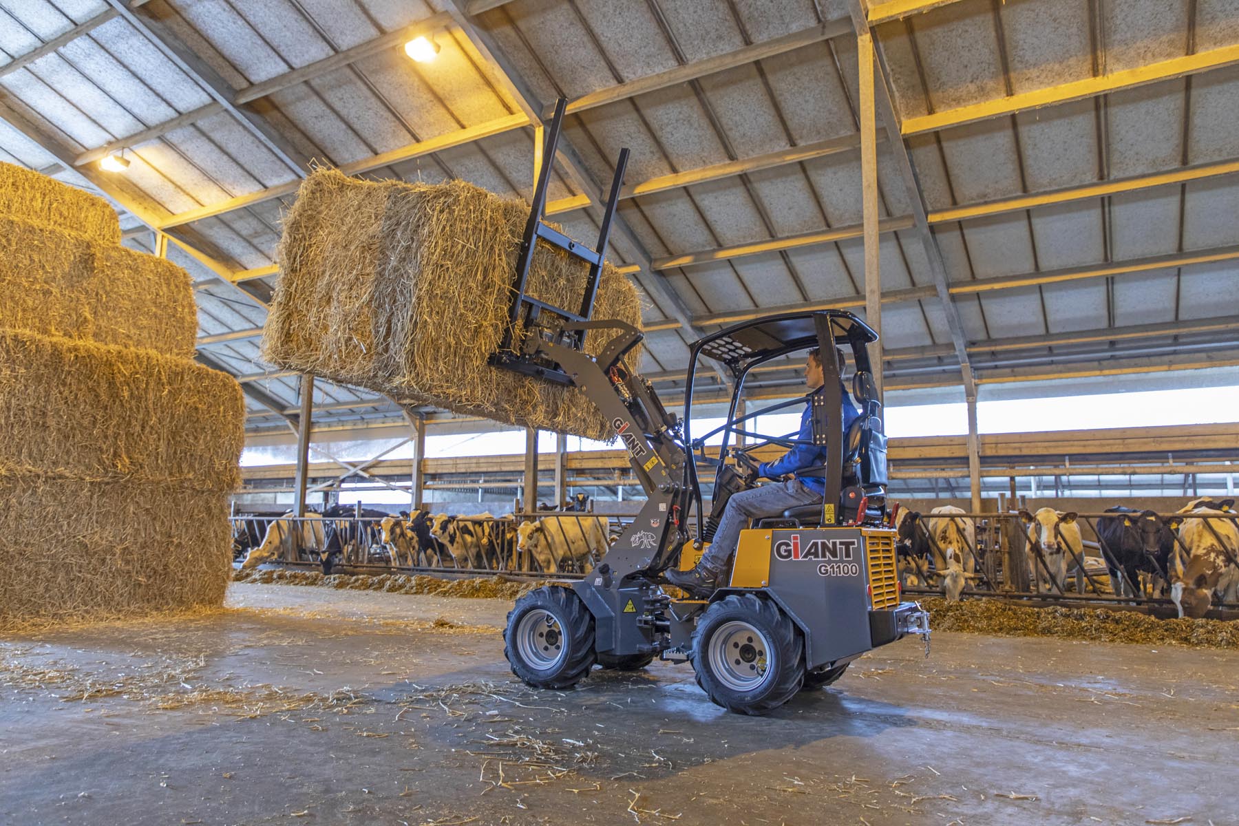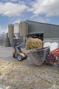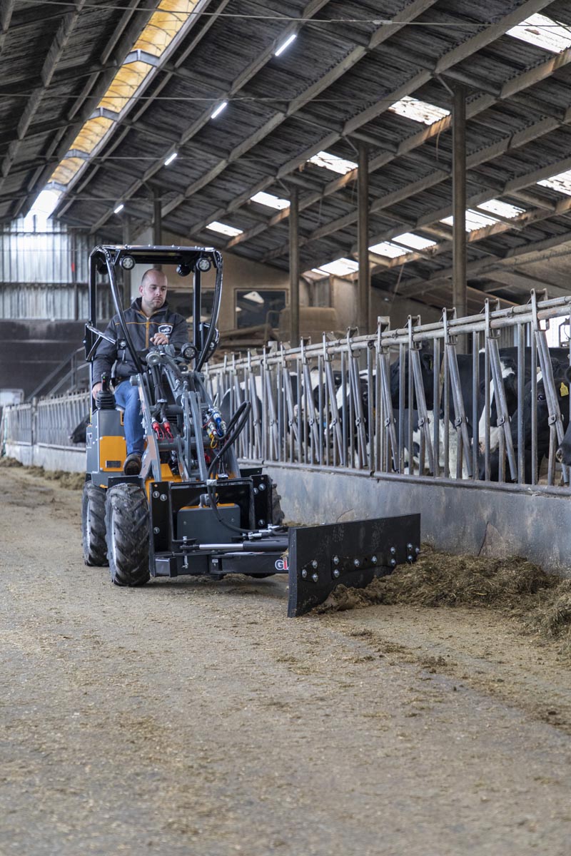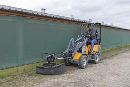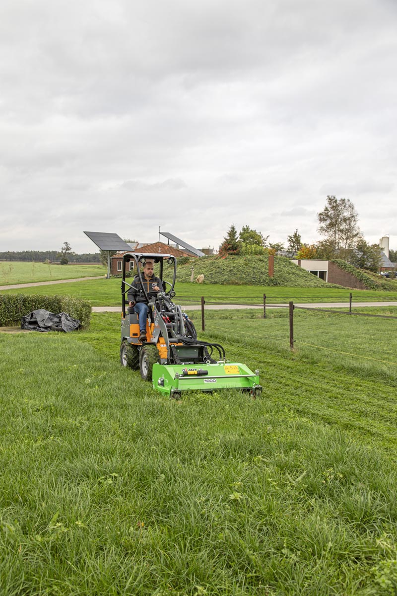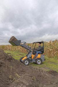 De G1100 mini wiellader wordt aangedreven door vier sterke Poclain wielmotoren, die hoge duw- en trekkrachten leveren en bekend staan als zeer onderhoudsarm. De hydrostatische vierwielaandrijving met automotive besturing geeft de kniklader goede rijeigenschappen, de elektrisch inschakelbare lengte sperdifferentieel zorgt ervoor dat alle vier de wielen altijd maximale grip hebben. Schakelen tussen vooruit en achteruit is heel gemakkelijk gemaakt met een elektrische schakelaar.